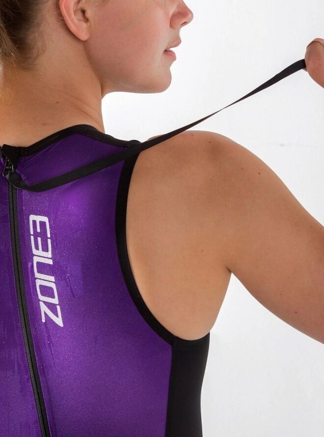 Zone3 Streamline Sleeveless Swimskin jsou dámské plavky bez rukávů určené pro triatlonisty a plavce, kteří chtějí zlepšit svou hydrodynamiku a rychlost při plavání bez neoprenu. Je to lehká a kompresivní plavecká kůže, která se nosí přes závodní soupravu nebo trikoty a pomáhá snižovat voděodolnost a podporuje efektivnější a rychlejší plavání. Oblek je vyroben z lehké italské tkaniny s vysokou kompresí a obsahuje hydrofobní (vodoodpudivé) vrstvy, které minimalizují absorpci vody a udržují tvar během výkonu. Švy jsou celosvařované a materiál je pokryt nano-povrchovou úpravou, díky které je komfort nošení vysoký a voděodolnost nízká. Zadní zip usnadňuje nazouvání a svlékání, zatímco jasnější zadní panel zlepšuje viditelnost ve vodě. Tyto plavky jsou ideálním doplňkem pro triatlonové závody, trénink na otevřené vodě nebo jakoukoli situaci, kdy chcete maximalizovat rychlost, snížit odpor a získat lepší vstupní pozici bez použití neoprenu.Detaily