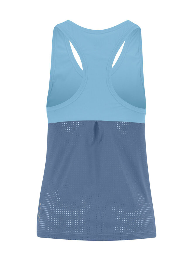 Minimalistický design s promyšlenou konstrukcí zajišťuje maximální prodyšnost a svobodu pohybu. Přední díl z hladké elastické látky jemně obepíná postavu bez zbytečného tlaku, perforovaný zádový panel zajišťuje efektivní odvětrávání i během horkých dnů a výkonnostní maxima.