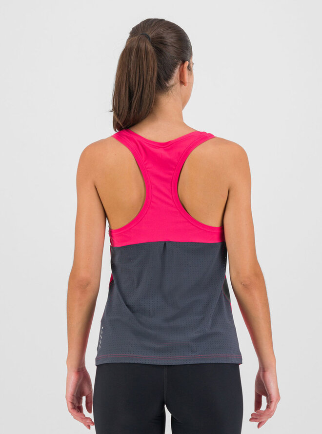 Minimalistický design s promyšlenou konstrukcí zajišťuje maximální prodyšnost a svobodu pohybu. Přední díl z hladké elastické látky jemně obepíná postavu bez zbytečného tlaku, perforovaný zádový panel zajišťuje efektivní odvětrávání i během horkých dnů a výkonnostní maxima.