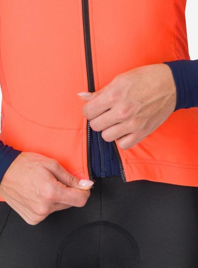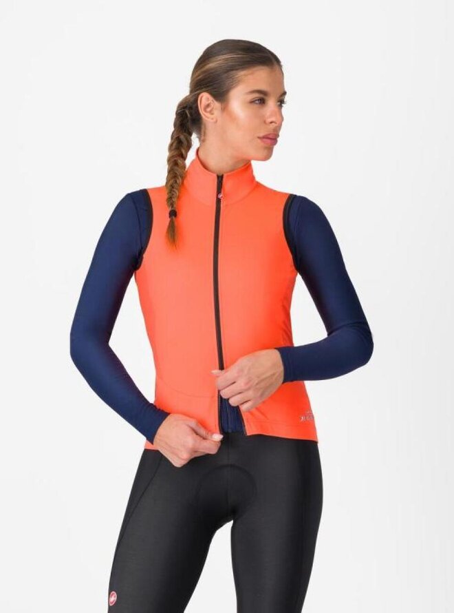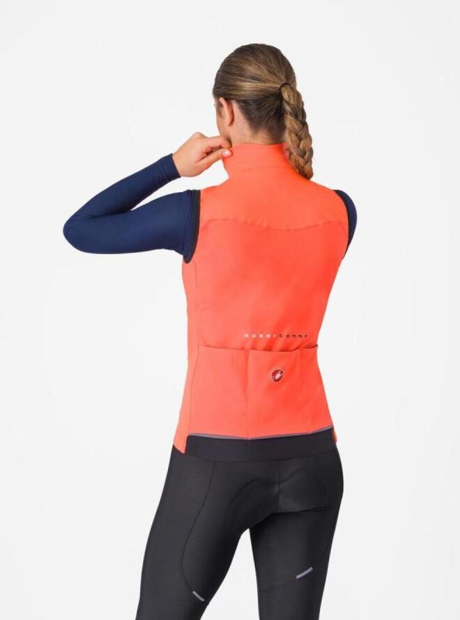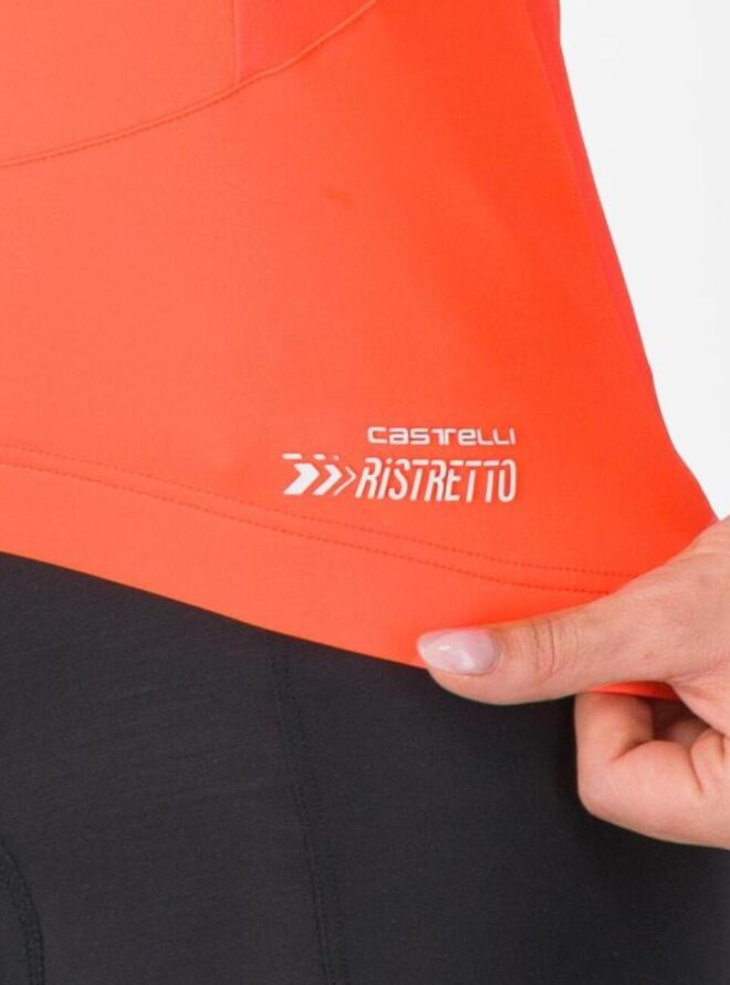 Tato vesta je vyrobena, když potřebujete být během jízdy v teple. Je to naše nejteplejší vesta, ale díky své výjimečné prodyšnosti pokrývá široký teplotní rozsah. Díky technologii materiálu Castelli Ristretto je tak univerzální. Materiál je navržen s prodyšností, takže je větruodolný, ale propouští velmi málo vzduchu, což odvádí více potu a udrží vás v suchu. Přední část je vyrobena ze středně těžké verze materiálu Ristretto, zatímco zadní část je vyrobena z elastické tkaniny pro ještě větší prodyšnost. Zůstanete v suchu, což znamená, že se udržíte v teple i s tenčí vestou. Ventilaci můžete nastavit pomocí dvojitého zipu YKK® Vislon®. Tři prostorné zadní kapsy pojmou vaše vybavení. Límec je dostatečně vysoký, takže nákrčník můžete nechat doma.