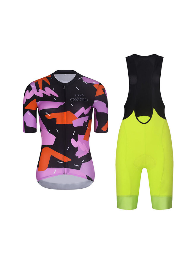 Cyklistický krátký dres a krátké kalhoty - BIKE´S GOOD - žlutá/černá/vícebarevná