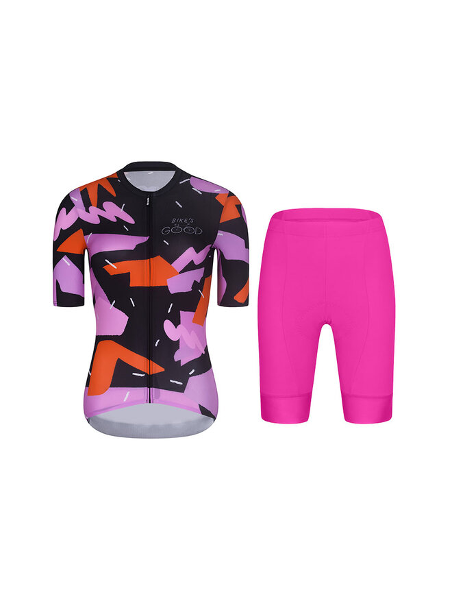 Cyklistický krátký dres a krátké kalhoty - BIKE´S GOOD - cyklámenová/vícebarevná/černá