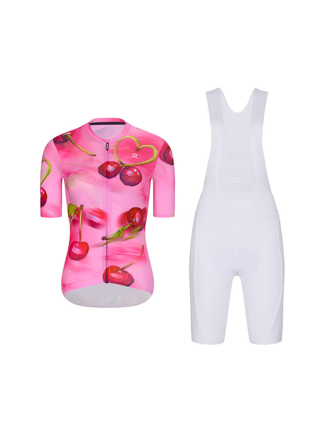Cyklistický krátký dres a krátké kalhoty - CHERIE - bílá/růžová