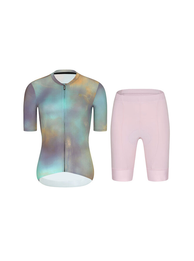 Cyklistický krátký dres a krátké kalhoty - COSMA - růžová/fialová/zlatá