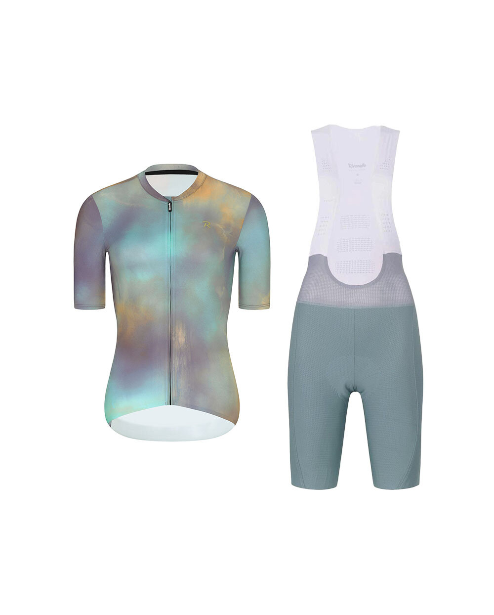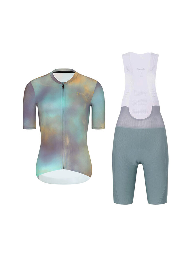 Cyklistický krátký dres a krátké kalhoty - COSMA - zelená/fialová/zlatá