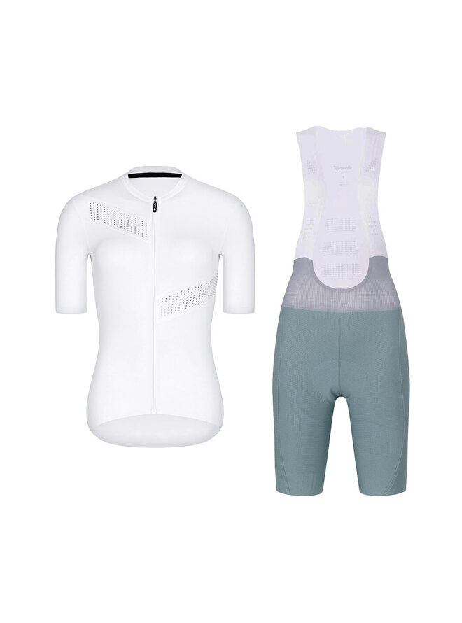 Cyklistický krátký dres a krátké kalhoty - CRYSTELLE - zelená/bílá