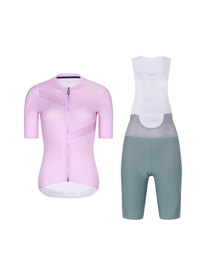 Cyklistický krátký dres a krátké kalhoty - CRYSTELLE - zelená/růžová