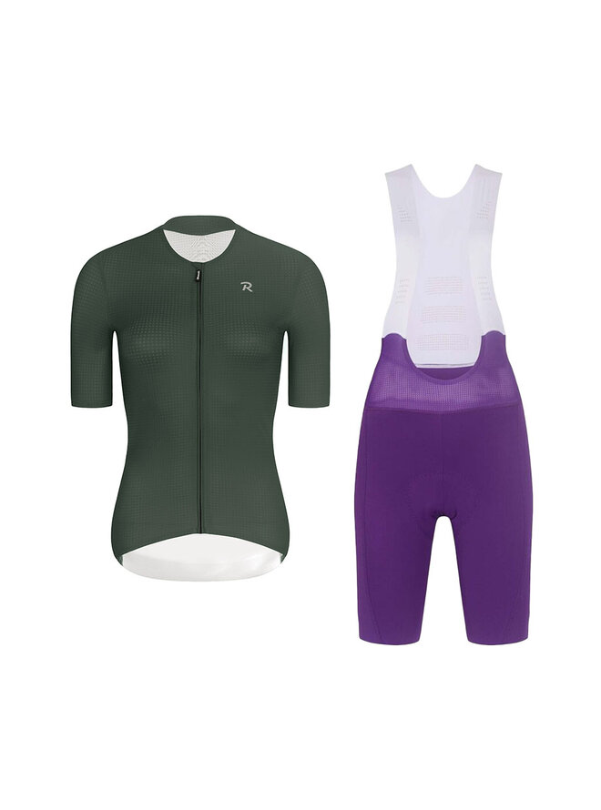 Cyklistický krátký dres a krátké kalhoty - ELEVATE - fialová/zelená