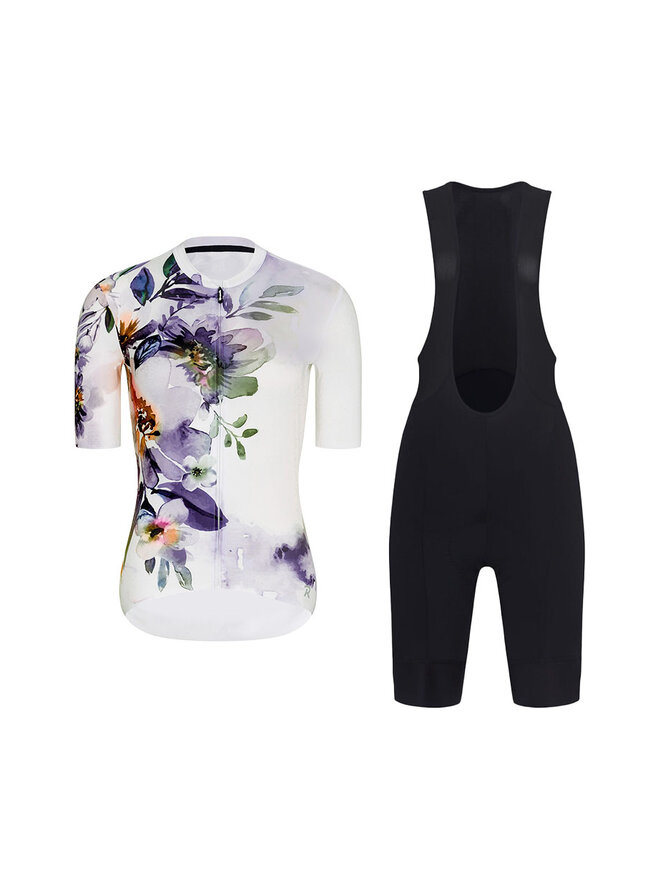 Cyklistický krátký dres a krátké kalhoty - FLOWERY LADY - bílá/vícebarevná/černá