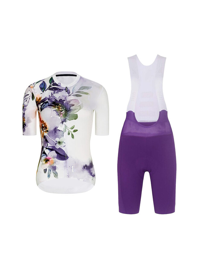 Cyklistický krátký dres a krátké kalhoty - FLOWERY LADY - fialová/bílá/vícebarevná