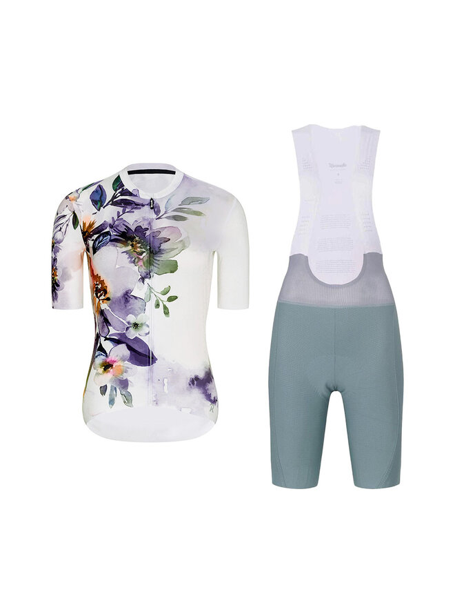 Cyklistický krátký dres a krátké kalhoty - FLOWERY LADY - bílá/zelená/vícebarevná
