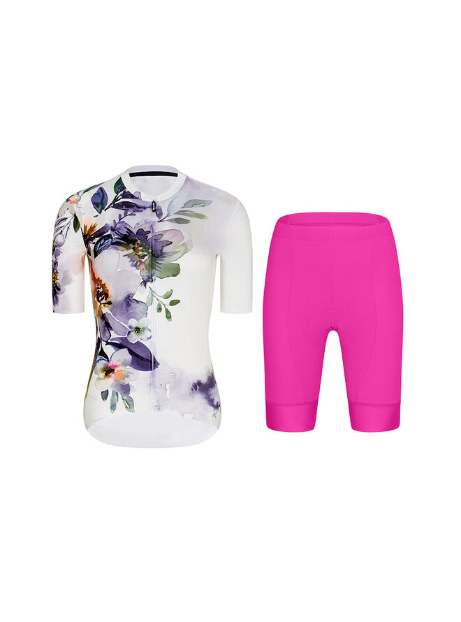 Cyklistický krátký dres a krátké kalhoty - FLOWERY LADY - cyklámenová/bílá/vícebarevná