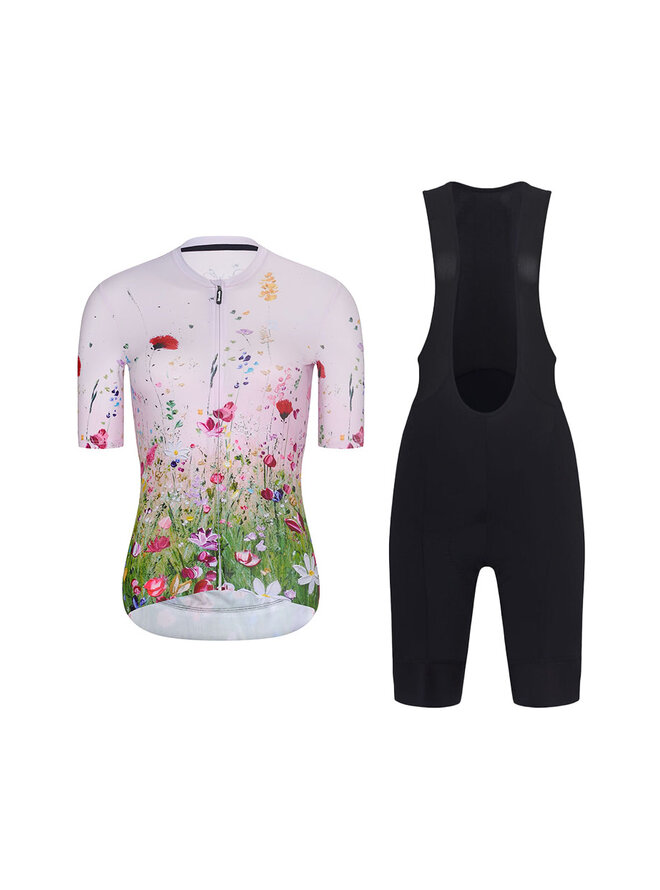 Cyklistický krátký dres a krátké kalhoty - IN BLOOM - černá/růžová/vícebarevná