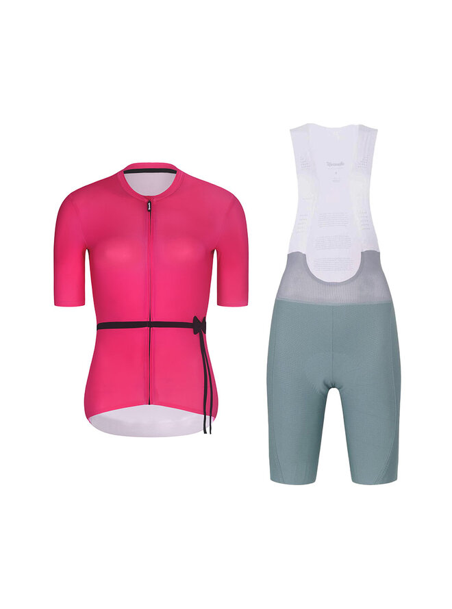 Cyklistický krátký dres a krátké kalhoty - LOVELY - zelená/růžová