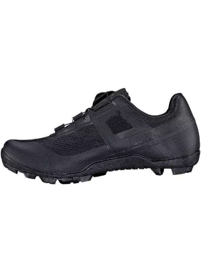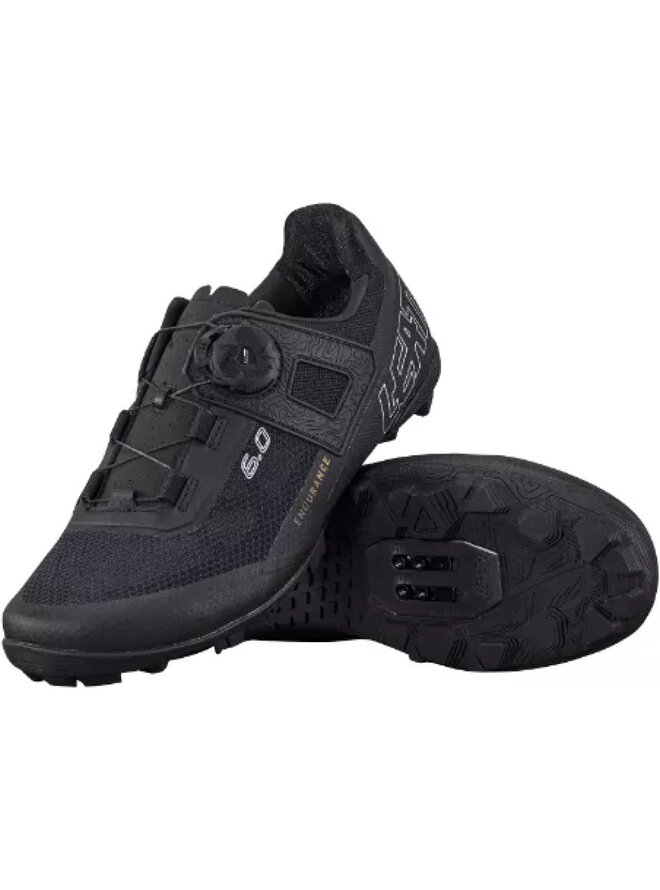 vytrvalostní boty (xc a štěrk) se světlem a průsvitným svrškem polymerních vláken. 100 % nylonový výztuž v podešvi poskytuje větší flexibilitu než verze uhlíku, což umožňuje pro chůzi pohodlnější boty. Jedila je vyrobena z gumové z jízdy s agresivním běhounem, což usnadňuje vstup do mokrých podmínek mimo kolo. Rozšířené drážky kmene umožňují větší rozsah nastavení. Systém šněrování One -Point Mod/Leatt umožňuje rychlou a přesnou adaptaci. Speciální směrová látka na patě opravuje nohu a zabraňuje sklouznutí i při utažení.