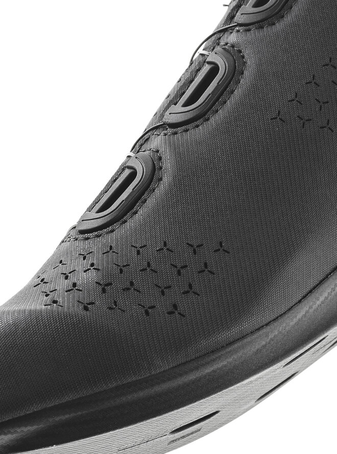 Silniční cyklistické boty Gaerne G.Sprint Lady jsou navrženy speciálně pro ženskou anatomii a nabízejí vyváženou kombinaci pohodlí, výkonu a moderních technologií. Perforovaný svršek z mikrovlákna zajišťuje výbornou prodyšnost a ventilaci, díky čemuž zůstávají nohy v suchu a pohodlí i při delších vyjížďkách. Vnitřní síťovaná konstrukce poskytuje stabilní oporu chodidla při šlapání. Přesné a rovnoměrné upnutí umožňuje mikronastavitelný systém BOA L6, který eliminuje vznik tlakových bodů. Komfort zvyšuje anatomicky tvarovaný jazyk Comfort Fit Tongue s tlumicí vrstvou, zatímco integrovaná protiskluzová patní část přispívá k lepší stabilitě a ovládání. Anatomická vložka EPS Transpirant a EPS Carbon Power Sole 8.0 vyrobené z nylonu vyztuženého karbonem zajišťují efektivní přenos síly a pohodlí při silniční cyklistice.Detaily