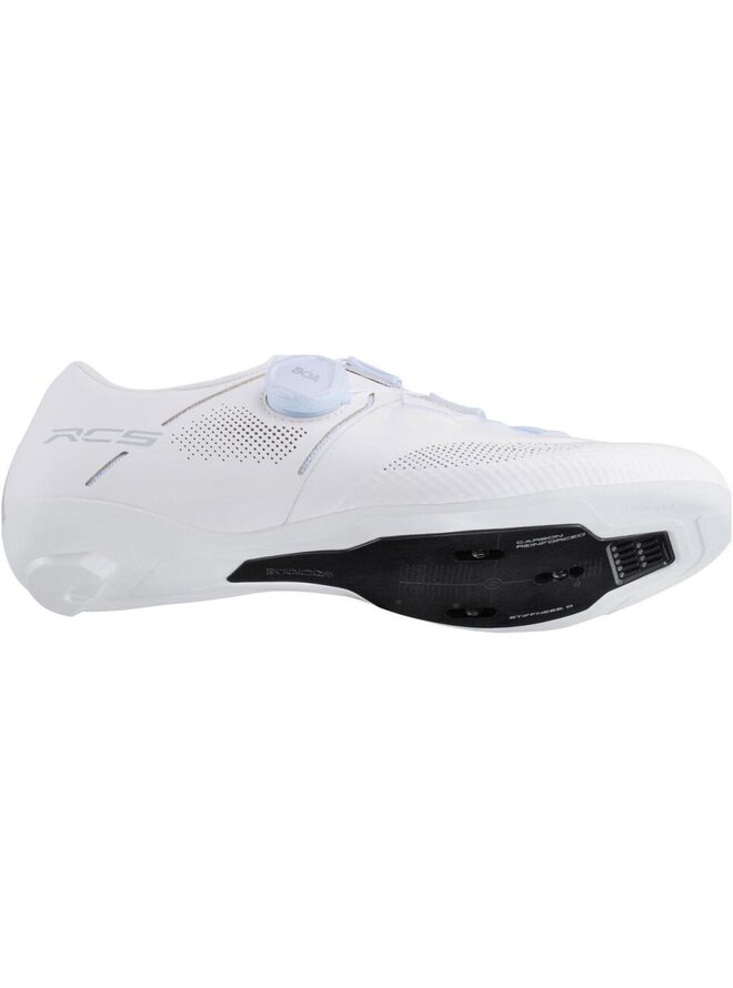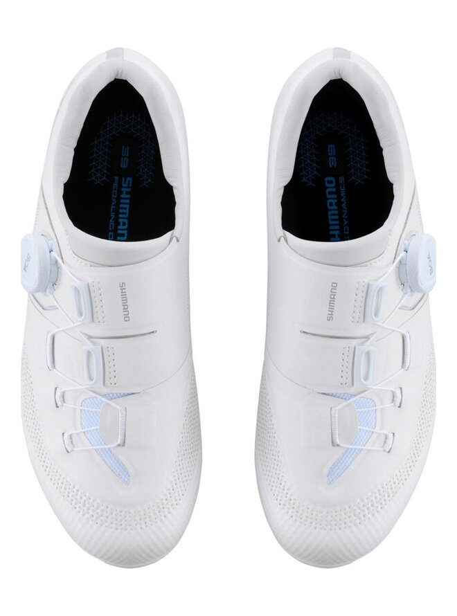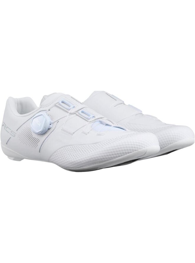 Vysoce výkonné dámské silniční cyklistické boty za skvělou cenu se špičkovou závodní technologií. Prodyšný a lehký svršek poskytuje celkové pohodlí a skvěle sedí, zatímco mezipodešev vyztužená karbonem poskytuje tuhost a stabilitu, kterou byste očekávali od špičkové cyklistické boty. Systém BOA® s kolečkem L6C a systémem šněrování vyvinutý společností SHIMANO. Nylonová mezipodešev vyztužená uhlíkovými vlákny pro vynikající přenos síly. Integrovaná bezešvá mezipodešev a horní konstrukce poskytují vynikající padnutí a stabilitu. Špička a mezipodešev jsou vyrobeny z 23 % (hmotnostních) recyklovaného materiálu. Kompaktní perforovaný svršek ze syntetické kůže s novým systémem zapínání. Speciální dámský tvar kopyta pro maximální pohodlí. Kompatibilní se zátkami SPD-SL. Hmotnost od 508g (č. 43). Doporučujeme si nohu změřit a objednat velikost dle tabulky velikostí - většinou je potřeba objednat o jednu velikost větší, než běžně nosíte.Detaily