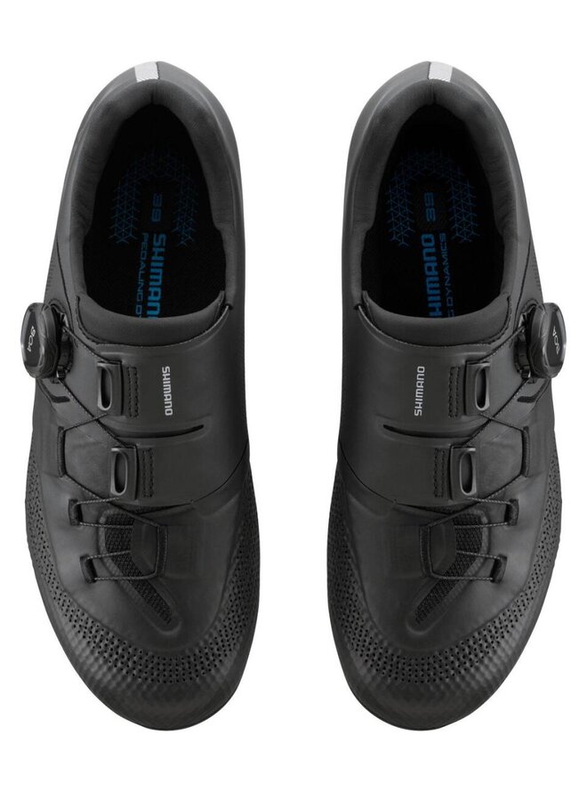 Vysoce výkonné dámské silniční cyklistické boty za skvělou cenu se špičkovou závodní technologií. Prodyšný a lehký svršek poskytuje celkové pohodlí a skvěle sedí, zatímco mezipodešev vyztužená karbonem poskytuje tuhost a stabilitu, kterou byste očekávali od špičkové cyklistické boty. Systém BOA® s kolečkem L6C a systémem šněrování vyvinutý společností SHIMANO. Nylonová mezipodešev vyztužená uhlíkovými vlákny pro vynikající přenos síly. Integrovaná bezešvá mezipodešev a horní konstrukce poskytují vynikající padnutí a stabilitu. Špička a mezipodešev jsou vyrobeny z 23 % (hmotnostních) recyklovaného materiálu. Kompaktní perforovaný svršek ze syntetické kůže s novým systémem zapínání. Speciální dámský tvar kopyta pro maximální pohodlí. Kompatibilní se zátkami SPD-SL. Hmotnost od 508g (č. 43). Doporučujeme si nohu změřit a objednat velikost dle tabulky velikostí - většinou je potřeba objednat o jednu velikost větší, než běžně nosíte.Detaily